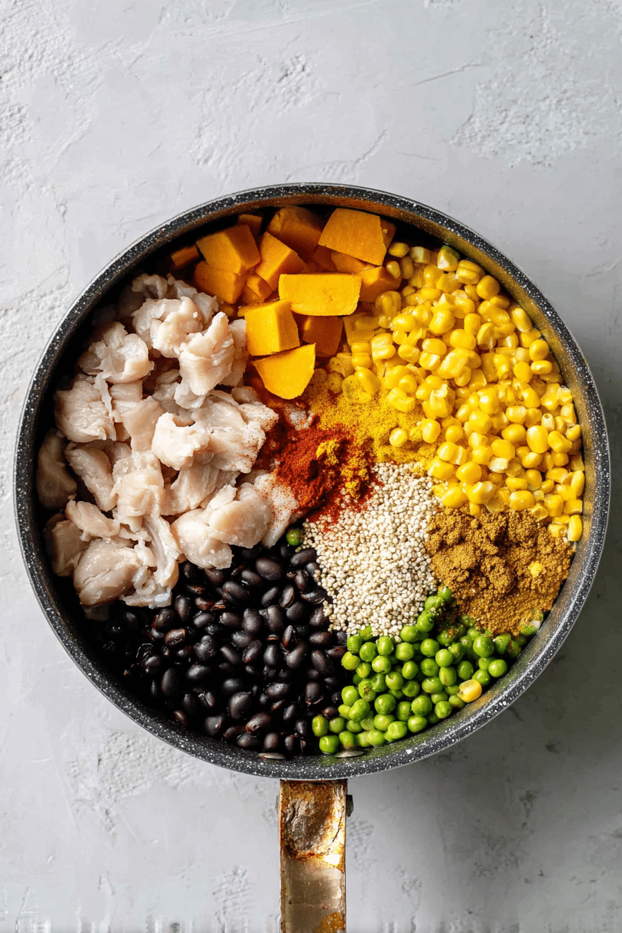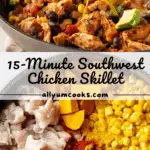 A quick and flavorful 15-Minute Southwest Chicken Skillet packed with chicken, beans, corn, and bold spices. Perfect for weeknight dinners with customizable toppings.