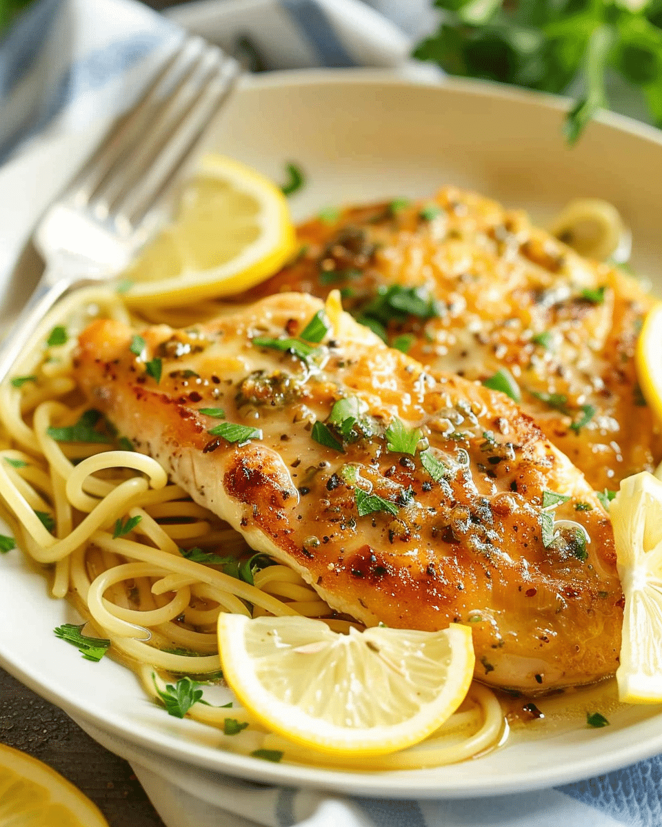 A quick and elegant 20-Minute Chicken Piccata featuring tender chicken breasts in a zesty lemon-caper sauce, perfect for weeknight dinners or entertaining guests.