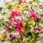 - Combine and Serve: Drizzle the creamy herb dressing over the tuna and vegetable mixture. Toss lightly to coat evenly. Add some of the sweet pickled onions on top or mixed in. Serve immediately as a refreshing salad or chill briefly for enhanced flavor.