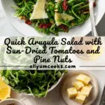 A bright and flavorful Arugula Salad featuring sun-dried tomatoes, toasted pine nuts, and Parmesan cheese, dressed with a simple lemon-honey vinaigrette. Perfect for a quick, fresh side dish or light meal.