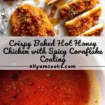 Baked Crunchy Hot Honey Chicken is a flavorful and crispy baked chicken recipe coated with a spicy cornflake and parmesan crust, then drizzled with a sweet and hot honey sauce. Perfectly balanced with smokiness, heat, and a touch of sweetness, this dish is a great option for a crowd-pleasing main course that’s easy to prepare and bake.