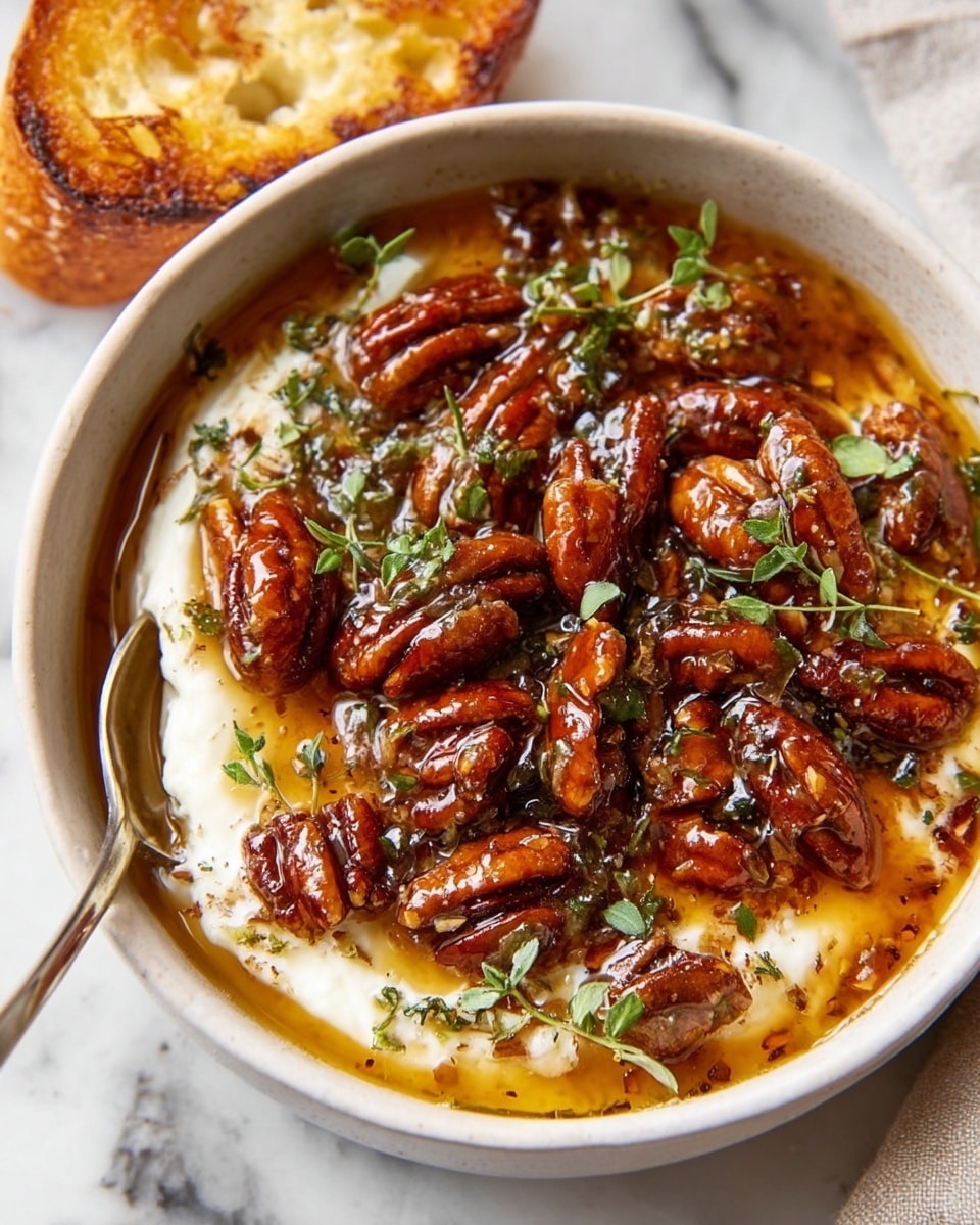 - While the feta bakes, I roughly chop the pecans and, if I like, toast them lightly in a dry skillet over medium heat for 2–3 minutes to bring out their aroma.