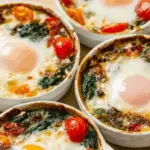 Baked Feta Eggs with Cherry Tomatoes and Spinach Recipe is one of those delightful meals that feels like a warm hug on a plate. Imagine the creaminess of feta cheese mingling with juicy cherry tomatoes bursting with sweetness, all baked under fluffy, perfectly cooked eggs. The addition of fresh spinach not only adds vibrant color but also brings a tender, mildly earthy note that balances the tangy and savory flavors. This dish is incredibly easy to prepare, yet it impresses with its rich layers of texture and flavor, making it a perfect brunch, breakfast, or even a light dinner option that will quickly become a favorite in your kitchen.