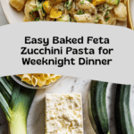 This Baked Feta Zucchini Pasta is a delicious and creamy pasta dish featuring roasted block feta cheese with zucchini, leek, shallot, and roasted garlic. The mixture is blended into a flavorful sauce and combined with perfectly cooked pasta, making an easy and comforting meal perfect for any night of the week.