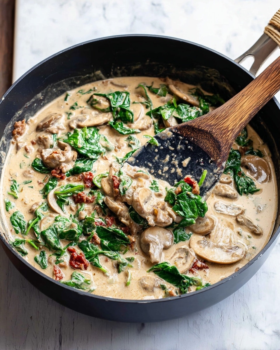 A cozy and satisfying dish featuring crispy baked potatoes stuffed with a creamy mixture of sautéed spinach, mushrooms, cheese, and herbs. These loaded potatoes make a perfect vegetarian main or hearty side, combining comfort and nourishment in every bite.