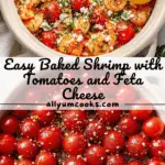 This vibrant and flavorful Baked Shrimp with Tomatoes and Feta Cheese is a simple, Mediterranean-inspired dish featuring juicy roasted cherry tomatoes, tender shrimp, and tangy feta cheese. Perfectly balanced with fresh herbs, lemon juice, and a hint of crushed red pepper flakes, this recipe makes a delightful dinner that can be prepared in under 40 minutes. Serve it with crusty bread and lemon wedges for a satisfying meal that’s both elegant and easy to make.