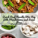 A flavorful and quick Beef Noodle Stir Fry featuring tender beef strips, savory mushrooms, crisp snow peas, and spring onions tossed with rich soy-based sauces and perfectly cooked egg noodles. This stir fry is a perfect balance of savory, slightly sweet, and aromatic flavors, ideal for a satisfying weeknight dinner.