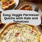 This Best Veggie Parmesan Quiche is a savory and satisfying vegetarian dish featuring a flaky pie crust filled with a flavorful mixture of eggs, fresh vegetables like kale, grape tomatoes, and red onion, complemented by a rich blend of Parmesan cheese and creamy almond milk and heavy cream. Perfect as a breakfast, brunch, or light dinner option, this quiche is packed with delicious herbs and spices for a gourmet touch.