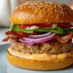 These BLT Baked Chicken Burgers are a delicious and healthier twist on a classic favorite, combining flavorful ground chicken seasoned with smoky spices and herbs, baked to juicy perfection. Served on buttery brioche buns with crisp lettuce, fresh tomato slices, and optional onion rings, topped with spicy mayo for an extra kick, these burgers deliver satisfying taste with simple preparation.