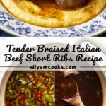 This Braised Beef Italian Short Ribs recipe features tender, flavorful ribs slow-cooked in a rich tomato and red wine sauce with aromatic vegetables and Italian seasoning. Perfectly seared and then simmered low and slow on the stovetop, these short ribs boast a melt-in-your-mouth texture and a savory sauce that’s ideal for serving over creamy polenta or mashed potatoes.