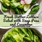 A fresh and vibrant Butter Lettuce Salad featuring crisp sugar snap peas, refreshing Persian cucumber, radishes, and tender butter lettuce. Enhanced with leftover grains and cooked meat for a heartier meal, this salad is tossed in extra-virgin olive oil and a delicious green goddess dressing for perfect flavor balance.