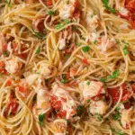 This Buttered Lobster Pasta with Cherry Tomatoes is a decadent yet simple dish combining sweet, tender lobster meat with buttery sauce and fresh cherry tomatoes. The garlic and shallot-infused butter, deglazed with white wine, creates a rich flavor coating perfectly paired with al dente spaghetti and the brightness of lemon juice and parsley.