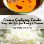 This Caramelized Gochujang Tomato Soup is a rich, creamy, and flavorful dish that combines the spicy, umami depth of Korean gochujang paste with the sweetness of caramelized onions and tangy tomatoes. Enhanced with coconut milk for creaminess and fresh herbs for brightness, this warming soup is perfect served with steamed rice or crispy scallion pancakes for a comforting meal.