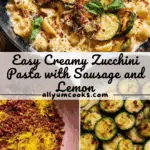 Reduce heat to medium low and pour in the heavy cream, stirring to combine with the sausage mixture. Add half of the lemon zest and the juice of half the lemon for a bright, tangy contrast that cuts through the richness. Toss in the cooked pasta and caramelized zucchini, stirring gently to coat everything evenly. If the sauce feels too thick, gradually add reserved pasta water until the perfect silky consistency is achieved.