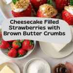 Delightfully creamy cheesecake-filled strawberries topped with brown butter graham cracker crumbs for a perfect bite-sized dessert. These no-bake treats combine the freshness of juicy strawberries with a smooth vanilla cheesecake filling and a crunchy, nutty crumb topping, making them an elegant and easy-to-make option for parties, gatherings, or a sweet snack.