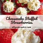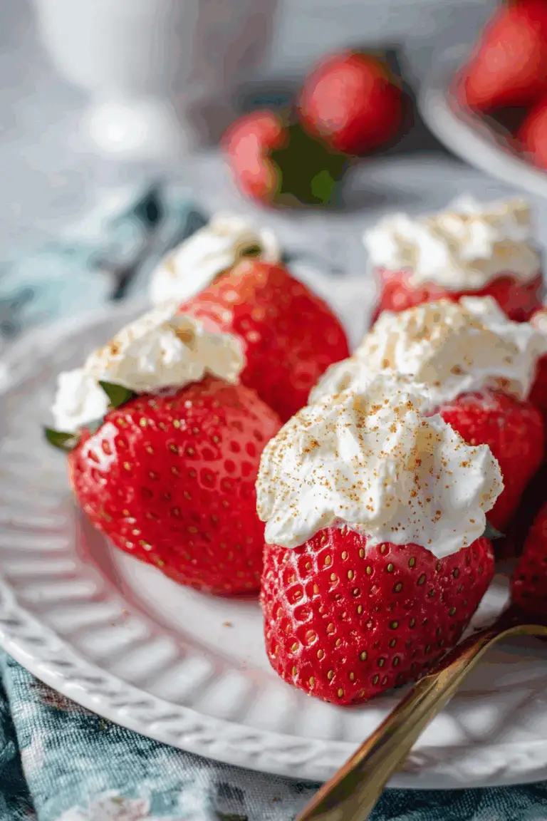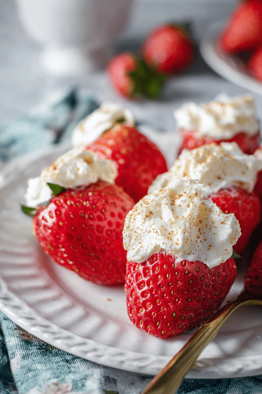 Fresh strawberries hollowed out and filled with a creamy cheesecake mixture, topped with graham cracker crumbs. A light, elegant, and crowd-pleasing dessert perfect for parties or holidays.