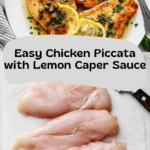 This Chicken Piccata recipe features tender boneless, skinless chicken breasts lightly coated in a parmesan and arrowroot flour mixture, pan-fried to golden perfection, and served in a tangy lemon-caper sauce with white wine and fresh parsley. It’s a bright and flavorful Italian-inspired dish that’s quick to prepare and perfect for a delightful weeknight dinner.