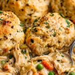 This Chicken Pot Pie with Biscuits is a comforting homemade classic featuring tender shredded chicken cooked gently in a flavorful broth-based gravy loaded with sautéed vegetables and peas, all topped with flaky, golden buttermilk biscuits baked to perfection. Perfect for a cozy family meal, this recipe blends creamy textures and savory herbs with easy preparation and flexible biscuit options, creating a satisfying one-dish dinner.