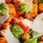 I love how this Chickpea and Sweet Potato Salad brings together roasted vegetables, fresh greens, and bold, zesty flavors. The combination of buffalo sauce and pesto vinaigrette makes it stand out from typical salads, offering the perfect balance of spicy, savory, and sweet. It’s a nutritious, versatile dish that’s just as delicious for lunch as it is for dinner.