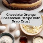 This decadent Chocolate Orange Cheesecake combines the rich flavors of semisweet chocolate and zesty fresh orange in a creamy, smooth cheesecake layered on a crunchy Oreo crust. Topped with a luscious chocolate ganache and adorned with both candied orange slices and iconic Terry’s Chocolate Orange pieces, this dessert is perfect for special occasions or indulgent treats. The cheesecake is baked in a water bath to ensure a silky texture and finished with a glossy ganache for extra chocolate goodness.