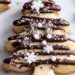 Allow the cookies to cool completely. Melt your dark chocolate chips gently — either in a microwave in short bursts or over a double boiler. Use a small spoon or piping bag to drizzle chocolate over the trees, then quickly sprinkle your Christmas sprinkles to catch onto the melted chocolate. Let them set at room temperature or in the fridge, and presto—your festive Christmas Tree Cookies Recipe is ready to brighten your holiday table.