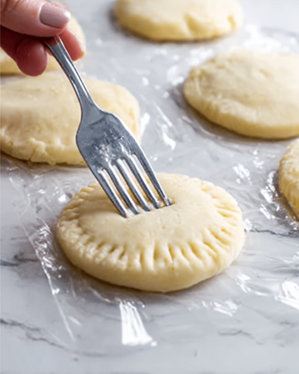 - Place half of a caramel candy in the center of half the circles, then top with another circle and seal the edges with a fork.