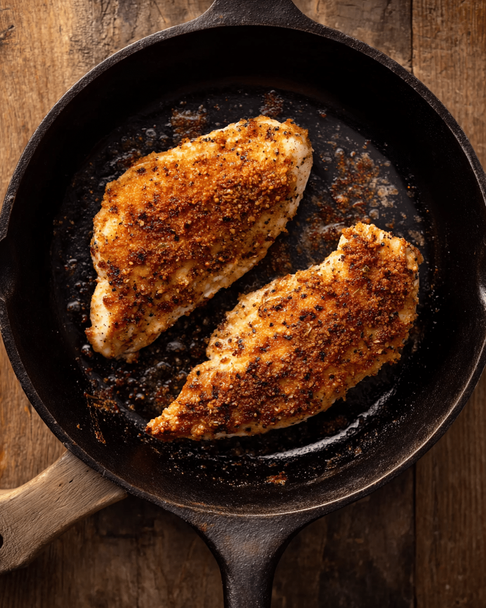 - In a skillet, I heat olive oil over medium-high heat and pan-fry the chicken cutlets for 2–3 minutes per side until golden brown.
