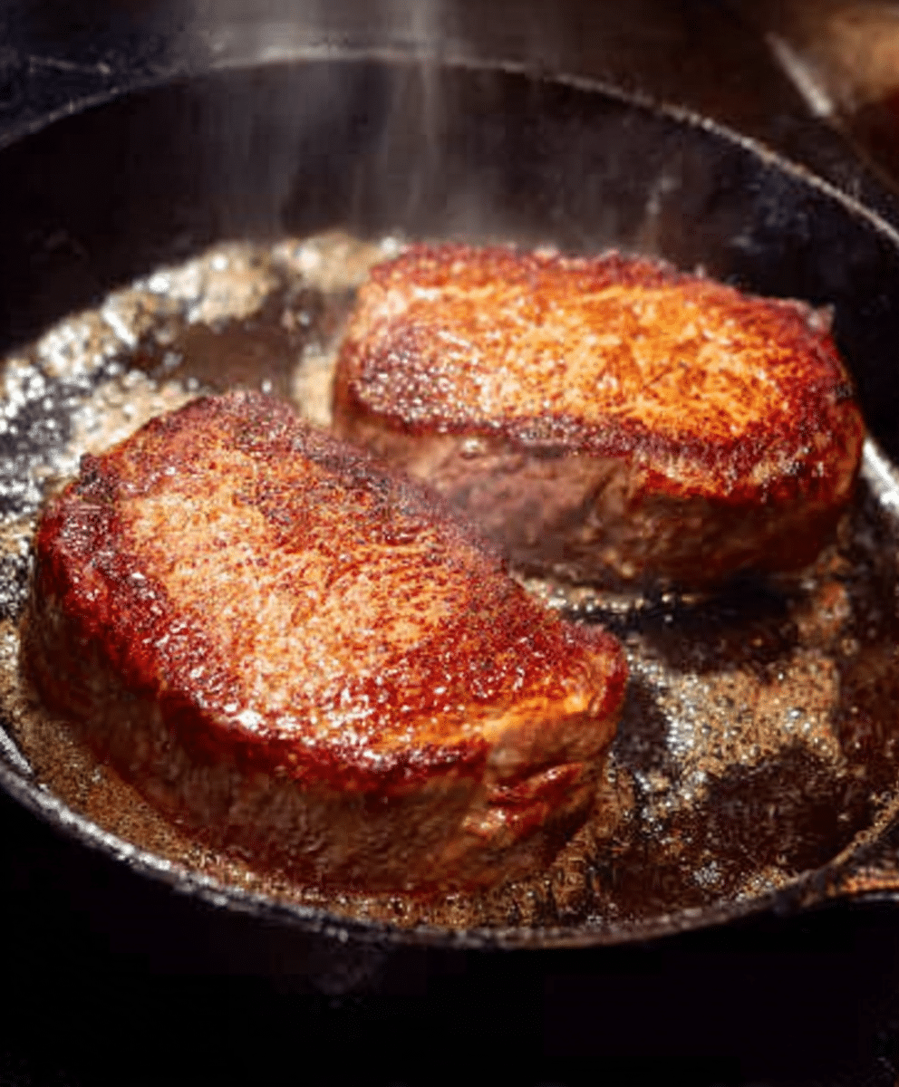 - In a hot skillet, I melt 1 tablespoon of butter and sear the steaks for 2–3 minutes per side for medium-rare (or longer to preferred doneness). I then remove the steaks and keep them warm.