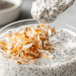 - Stir and serve: After chilling, stir the pudding well. If it’s too thick, add a splash of milk and mix again to reach your desired consistency. Add your favorite toppings if desired, then enjoy your creamy coconut chia pudding.