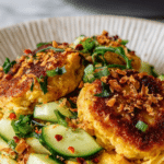 - Make Salad: In a separate bowl, mix diced cucumber, chopped green onions, chopped cilantro, lime juice, sesame oil, olive oil, fish sauce, and sugar. Toss well and set aside to let the flavors marry.
