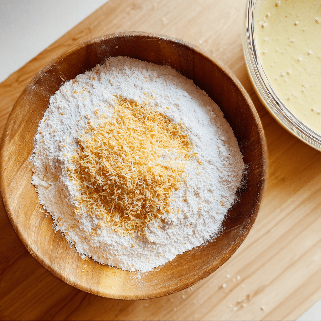 - In a bowl, I mix the melted butter, sugar, flour, and shredded coconut until the mixture resembles coarse crumbs.