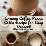 This Coffee Panna Cotta recipe is a silky smooth Italian dessert infused with rich coffee flavor. Made with a creamy mixture of whole milk, heavy cream, caster sugar, and instant coffee, it sets into a delicate, wobbly custard that’s topped with lightly sweetened whipped cream and a dusting of espresso powder. Perfect for coffee lovers seeking an elegant, make-ahead treat.
