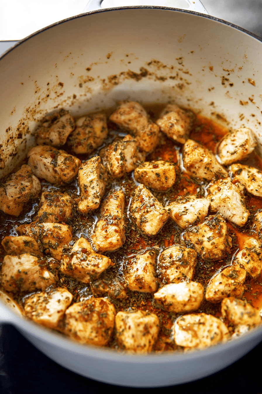 - I heat olive oil in a large skillet over medium-high heat and cook the chicken until golden brown and cooked through, about 5–6 minutes per side. Then I transfer it to a plate to rest.