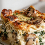 This Creamy Chicken Lasagna recipe combines tender, seasoned chicken and mushrooms with layers of fresh spinach, béchamel sauce, and a luscious ricotta cheese mixture. Baked to golden perfection with mozzarella and Parmesan cheeses, this Italian-inspired dish is rich, comforting, and perfect for feeding a crowd or enjoying as delicious leftovers.