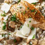 For a more elegant presentation, try plating the chicken on a bed of the creamy mushroom rice with a drizzle of the pan sauce spooned artfully around it. Serve in a rustic cast-iron skillet straight from stove to table for a cozy, family-style experience. If entertaining, garnish each serving with edible flowers or microgreens to impress your guests visually as well as with taste.