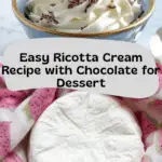 A smooth, creamy ricotta cream made with ricotta cheese, powdered sugar, and optional vanilla, enhanced with rich dark chocolate for a luscious dessert topping or dip.