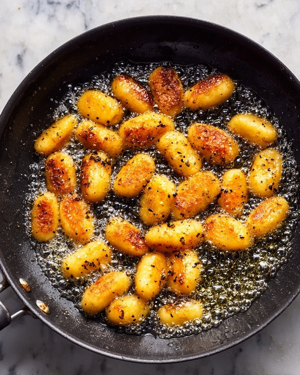 - Return the crispy gnocchi to the skillet and toss to coat evenly.