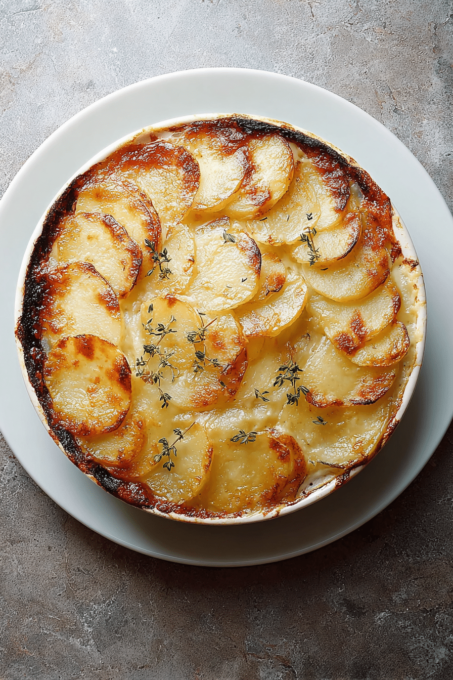 - On a parchment-lined baking sheet, I arrange the potato slices in overlapping circles to form a round galette, about 10–12 inches wide.