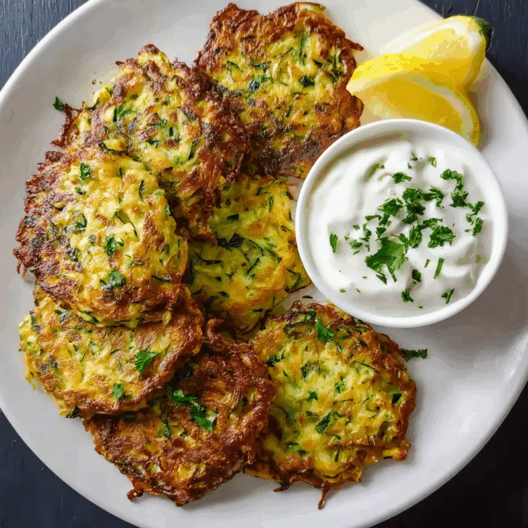 I adore these zucchini fritters because they’re crisp on the outside, tender on the inside, and pair beautifully with a tangy lemon-yogurt sauce that brightens every bite.