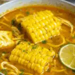 Cuban Chicken Soup, or Sopa De Pollo, is a comforting and flavorful traditional soup known for its aromatic spices and hearty ingredients. This recipe features tender chicken breasts simmered with vegetables like carrots, potatoes, and corn in a savory broth, enhanced by cumin, oregano, turmeric, and chili powder. Finished with angel hair pasta and a splash of lime juice, this Cuban classic offers a perfect balance of warmth, zest, and texture for an inviting meal.