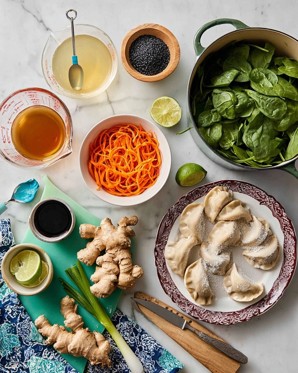 I love this soup because it’s both comforting and vibrant. The tamari, ginger, and garlic create a savory umami base, while the lime juice and rice vinegar brighten every spoonful. The dumplings make it hearty enough for a full meal, and the spinach adds a fresh, healthy touch. It’s easy to adapt with whatever dumplings or veggies I have on hand.