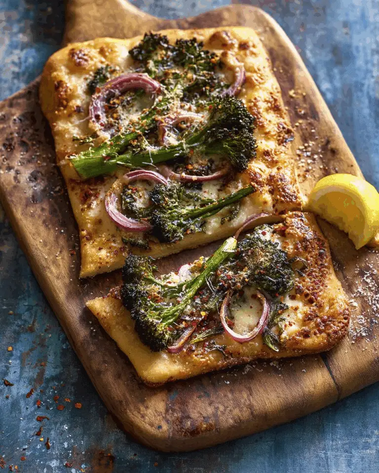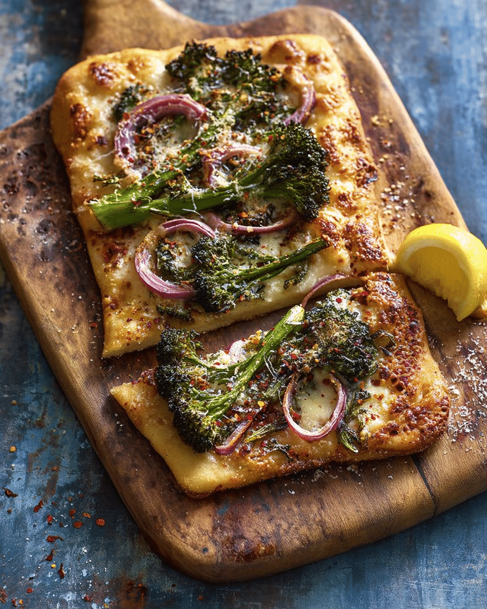 I store leftover slices in an airtight container in the refrigerator for up to 3 days. To reheat, I place the slices on a baking sheet in a 375°F (190°C) oven for about 8–10 minutes to keep the crust crisp. The microwave works too, but the crust won’t stay as crunchy. I don’t recommend freezing this pizza since the broccolini loses its texture after thawing.