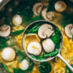 - Add Spinach and Serve: Stir in fresh baby spinach until wilted. Taste and adjust seasoning by adding more soy sauce if needed. Serve the soup hot for a warm, nourishing meal.