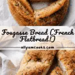Fougasse is a rustic French bread that’s crisp on the outside, soft inside, and often shaped to look like a leaf. I love how it’s both beautiful and flavorful, especially when topped with olive oil, Parmesan, and rosemary. It’s the perfect bread to tear apart and share at the table.
