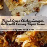 Experience the comforting fusion of French onion soup flavors and classic Italian lasagna in these delicious French Onion Chicken Lasagna Roll Ups. Featuring caramelized sweet onions, tender shredded chicken, fresh spinach, creamy ricotta, and a fragrant thyme-infused béchamel sauce, this dish offers a rich, savory twist on a traditional lasagna. Perfect for a cozy dinner, these roll ups combine layers of cheese, chicken, and flavorful sauce rolled inside tender lasagna noodles, baked to golden perfection and garnished with fresh herbs.