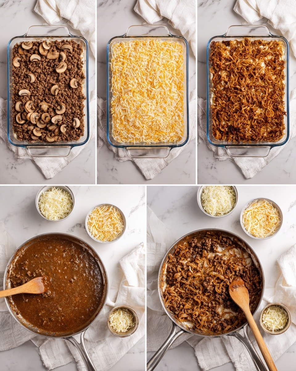 I love this recipe because it’s simple, comforting, and full of rich, savory flavors. The caramelized onions add a natural sweetness that pairs beautifully with the seasoned beef and creamy sauce. It’s also versatile—I can easily toss in extra vegetables or adjust the cheese to my liking. Plus, it reheats wonderfully, which makes it great for meal prep or leftovers the next day.