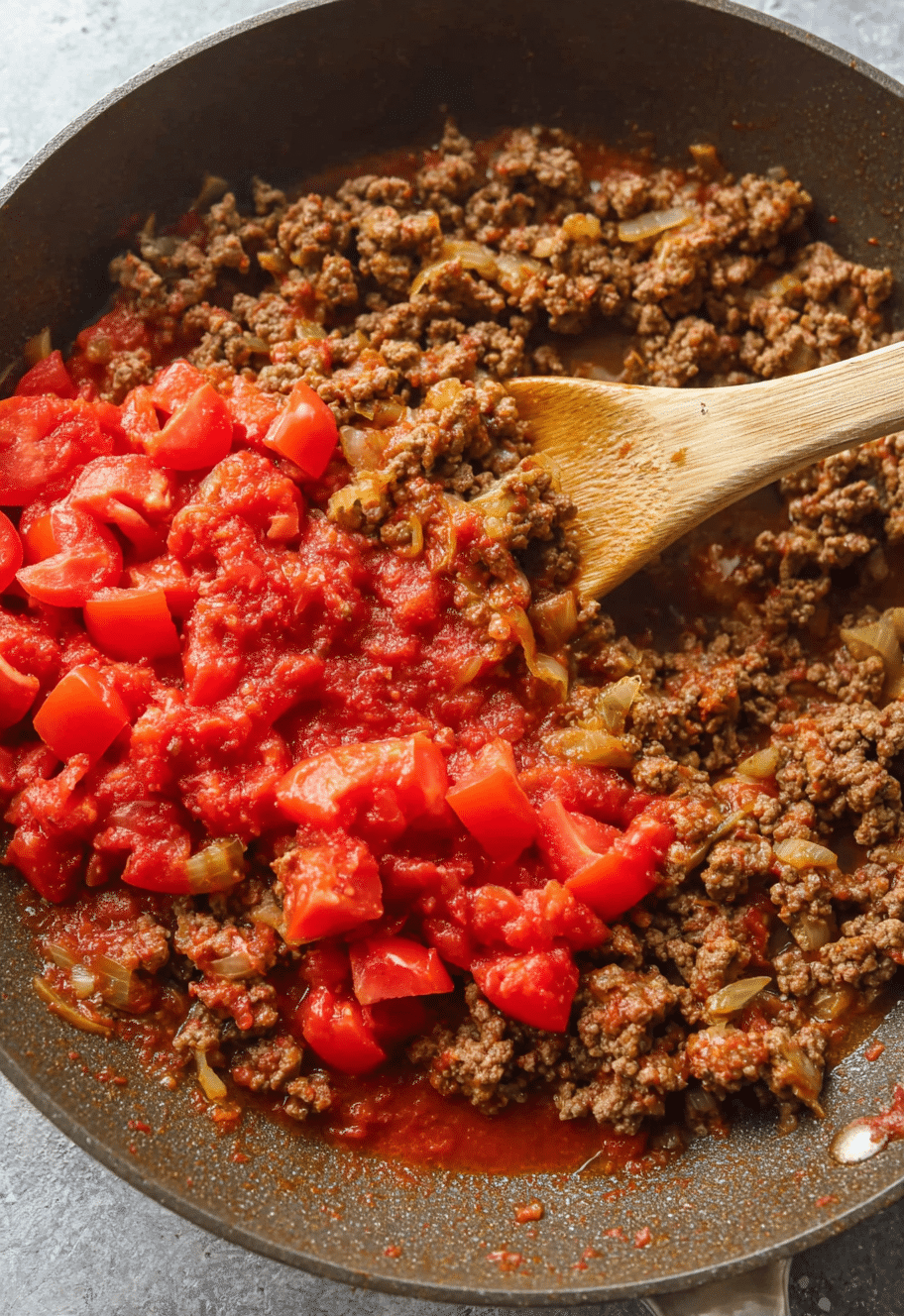 - I stir in the tomatoes and let the mixture simmer for 5–7 minutes.