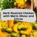 This Herb Roasted Chicken with Warm Olives and Citrus is a vibrant and flavorful dish that combines succulent roasted chicken thighs seasoned with fresh herbs and smoked paprika, paired perfectly with a bright, zesty warm olive and citrus topping. The olives, garlic, and citrus zest create a stunning balance of savory and tangy flavors that elevate the roasted chicken to an elegant yet simple meal, ideal for a comforting weeknight dinner or a special occasion.