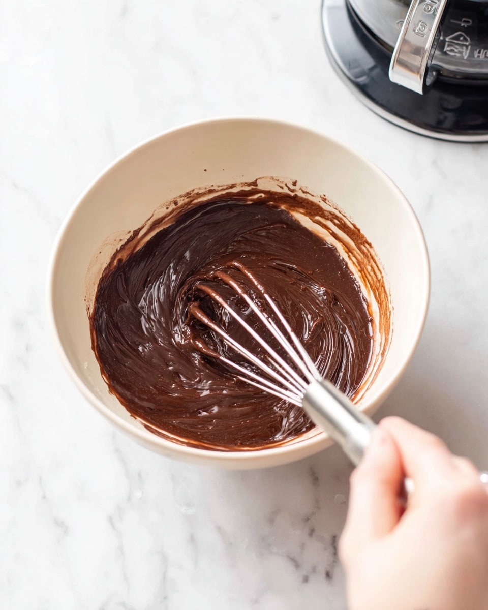 - Whisk in cocoa powder until smooth and no lumps remain.