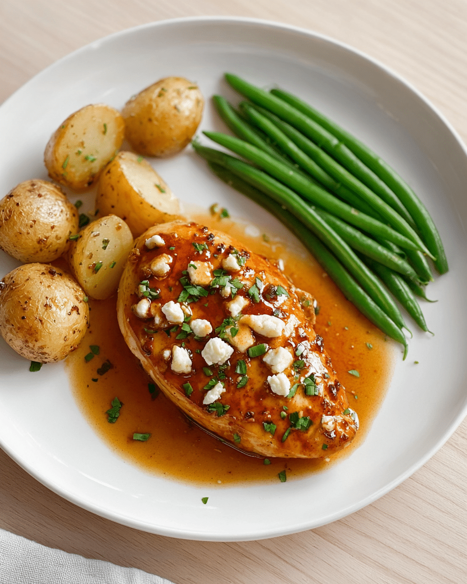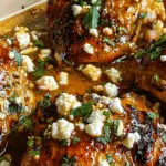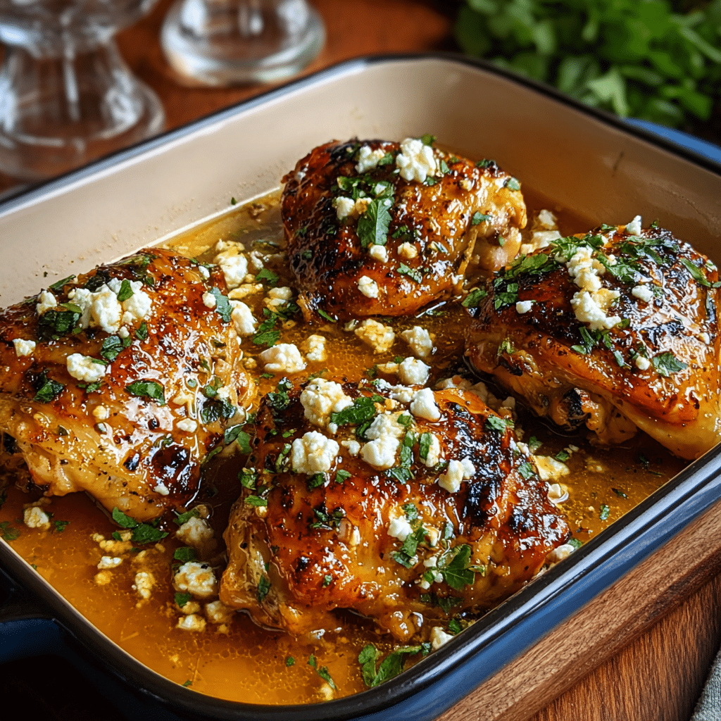 A sweet, spicy, and savory chicken dish featuring juicy baked chicken topped with melted feta and drizzled with a hot honey glaze. This Mediterranean-inspired meal is simple, elegant, and bursting with flavor.